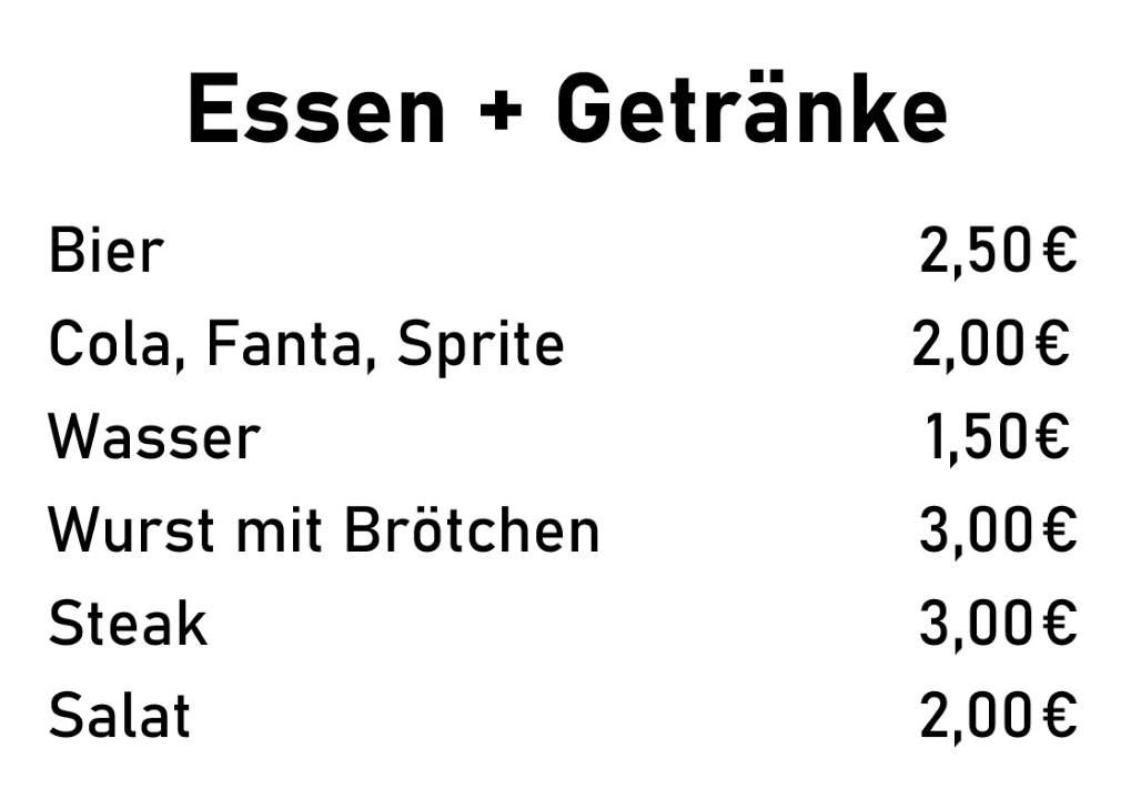 Hier findet ihr die Preisliste für Donnerstag: